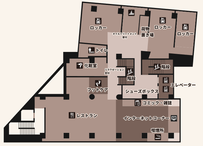 梅田という立地の良さから、終電を逃したときの避難先としても定番。初めてでも受付から浴室までの導線が分かりやすく、サウナ施設に不慣れな人でも戸惑いにくい設計です。