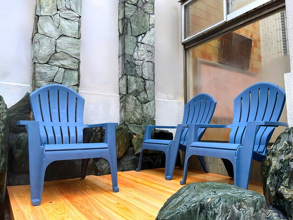 銭湯では珍しく、広い露天スペースにととのい椅子が設置され、ゆったり空を眺めながら整うことが出来ます。
