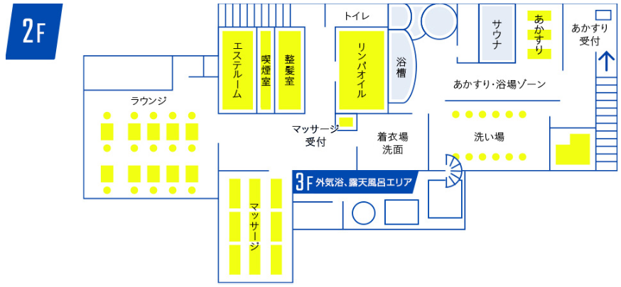 浴室とサウナは1階から3階のフロアに分かれており、それぞれに特徴のあるサウナが設置されています。